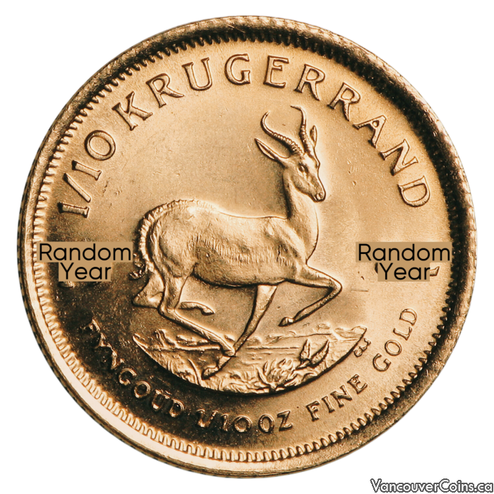 1/10 ounce South Africa Gold Krugerrand BU - Random year