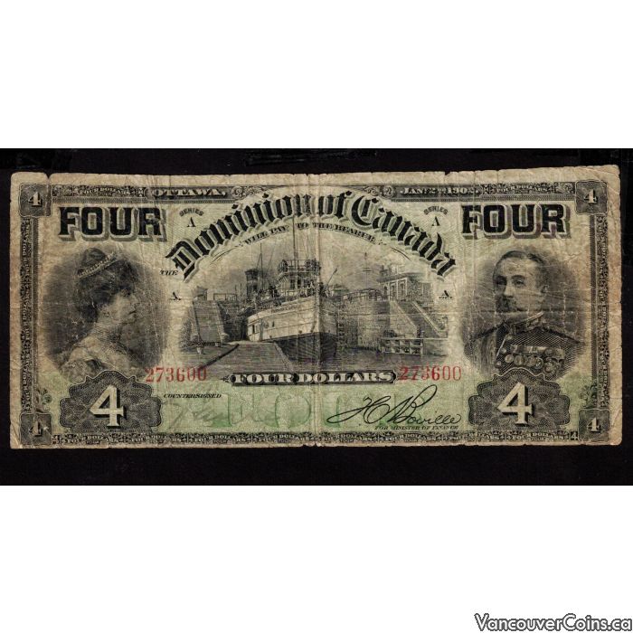 1902 Canada $4 dollar banknote DC-17b 273600 G/VG