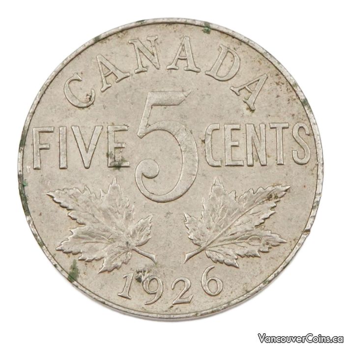 1926 Near 6 Canada 5 cents nice EF/AU
