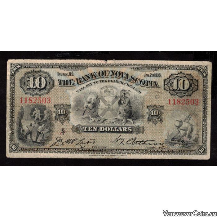 1935 Bank of Nova Scotia $10 banknote 36-04 SN 1182503 nice FINE