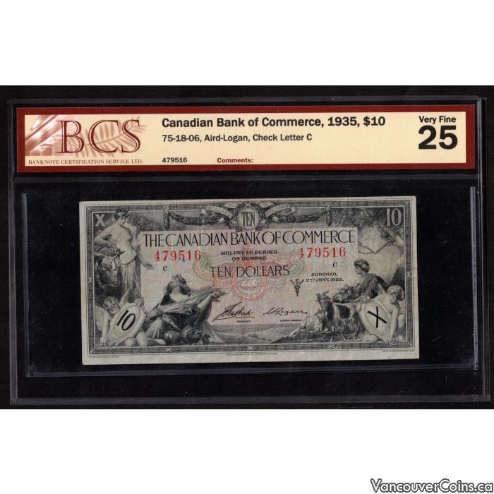 1935 Canadian Bank of Commerce $10 banknote Logan R 479516 BCS VF25