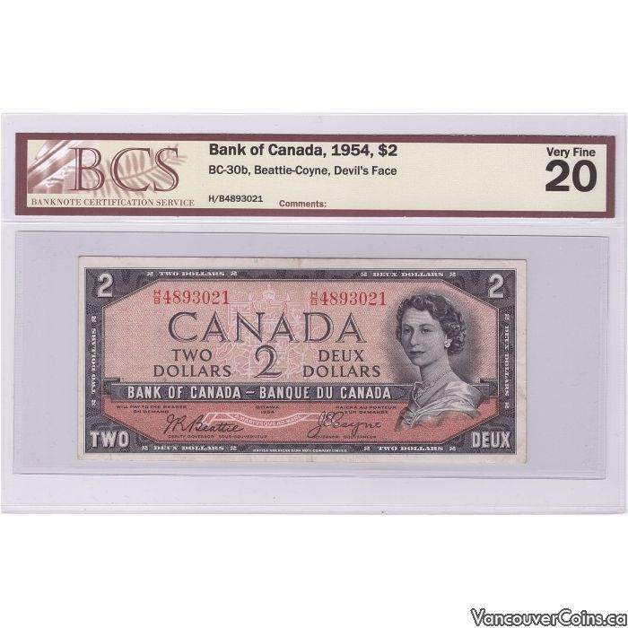 1954 Bank of Canada $2.00 Devils Face H/B BC-30b BCS VF-20