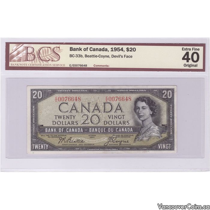 1954 Bank of Canada $20 Devils Face E/E BC-33b BCS EF40 original