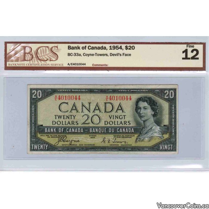 1954 Bank of Canada $20 "Devil's Face" Fine-12 A/E Coyne/Towers BC-33a