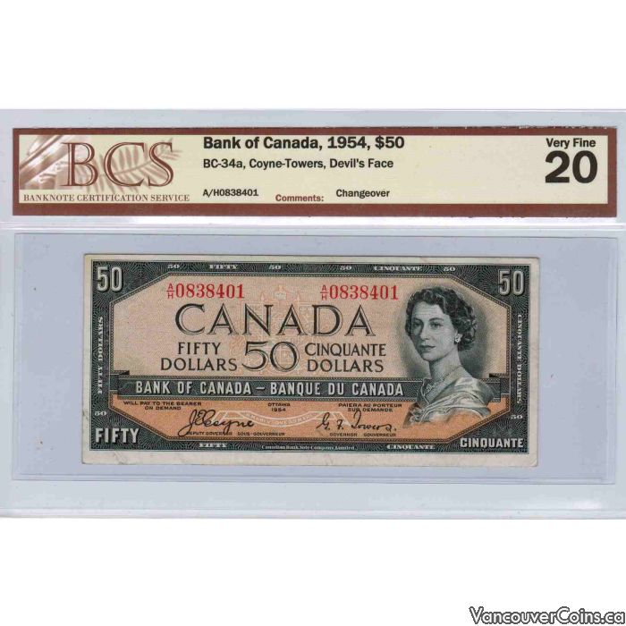 1954 Canada $50 A/H Devils Face BC-34a BCS VF20