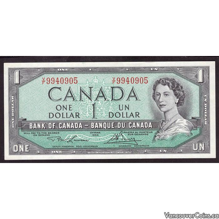 1954 Canada $1 banknote Lawson Bouey V/F 9940905 GEM UNC