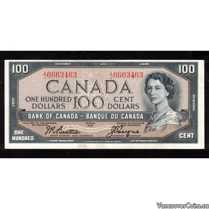 1954 Canada $100 banknote Beattie Coyne A/J 6663463 nice AU+