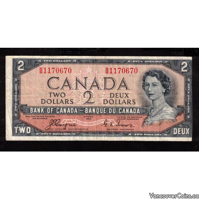 1954 Canada $2 dollar devils face note Coyne Towers B/B 1170670 VF