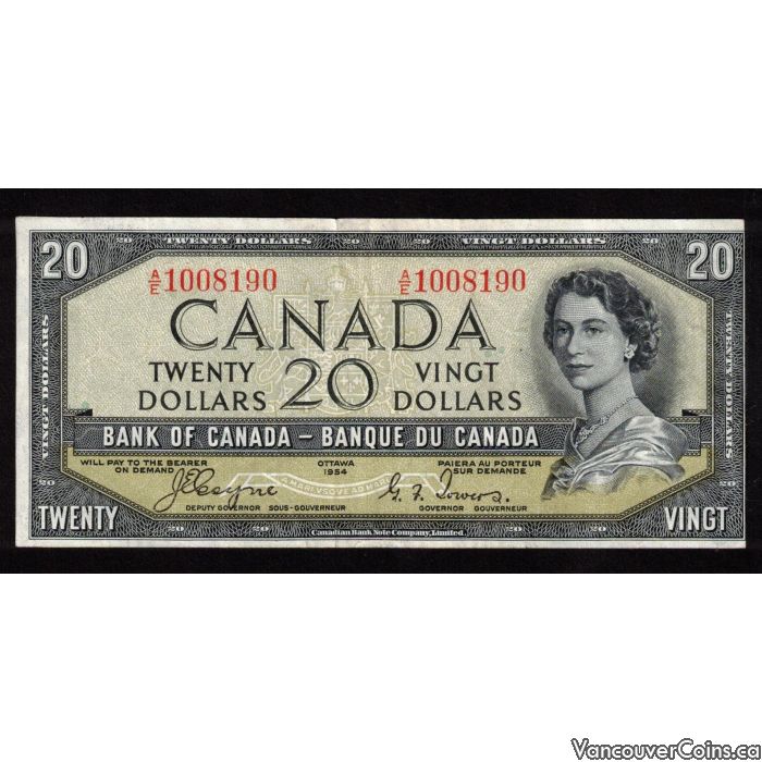 1954 Canada $20 devils face banknote Coyne Towers A/E 1008190 VF