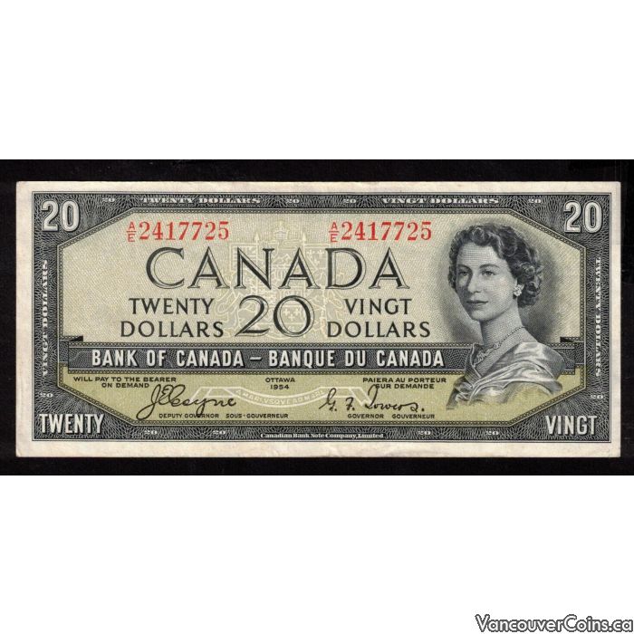 1954 Canada $20 devils face banknote Coyne Towers A/E 2417725 VF+
