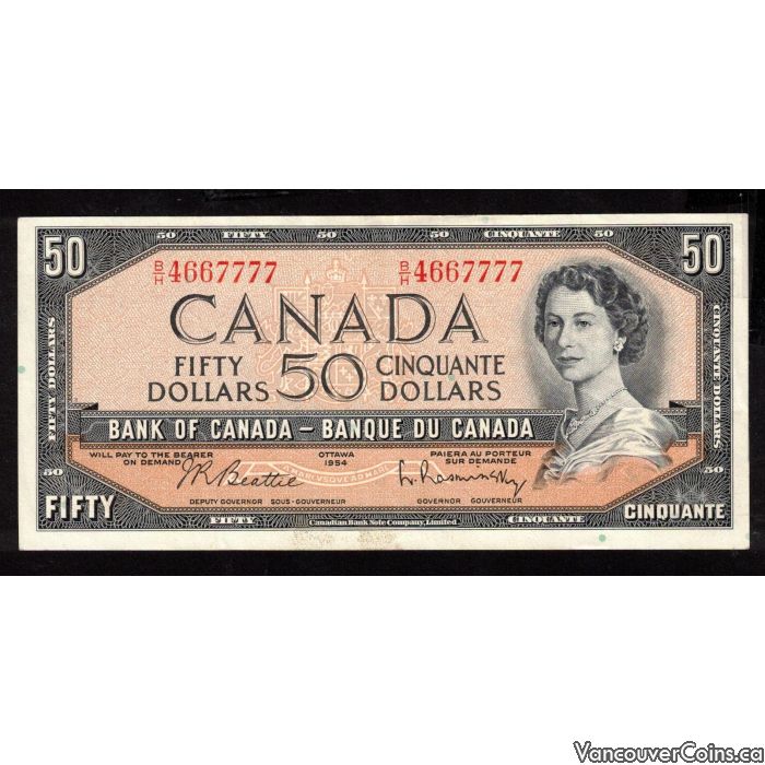 1954 Canada $50 banknote Beattie Rasminsky B/H 4667777 EF