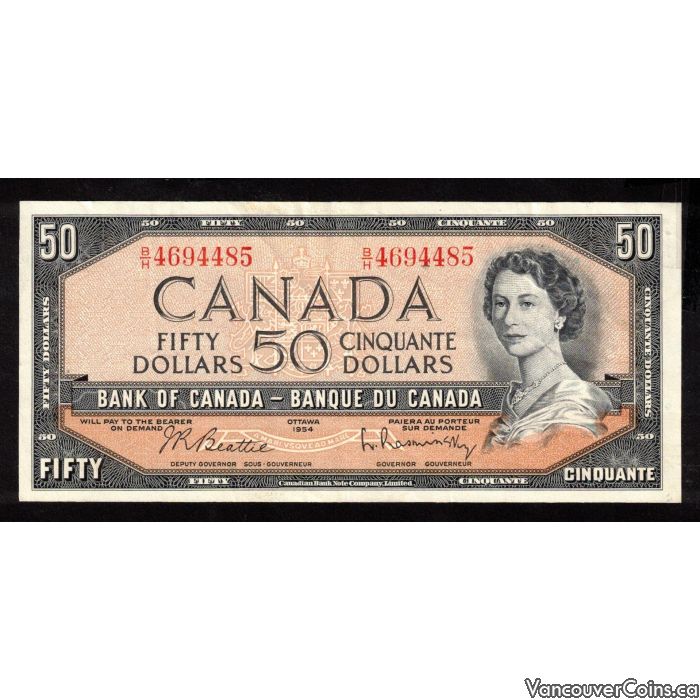 1954 Canada $50 banknote Beattie Rasminsky B/H 4694485 a/EF