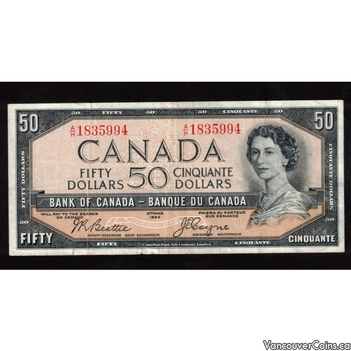 1954 Canada $50 devils face banknote Beattie Coyne A/H 1835994 F/VF