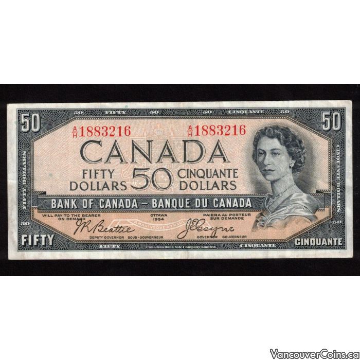 1954 Canada $50 devils face banknote Beattie Coyne A/H 1883216 nice VF+