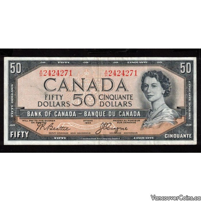 1954 Canada $50 devils face banknote Beattie Coyne A/H 2424271 FINE+