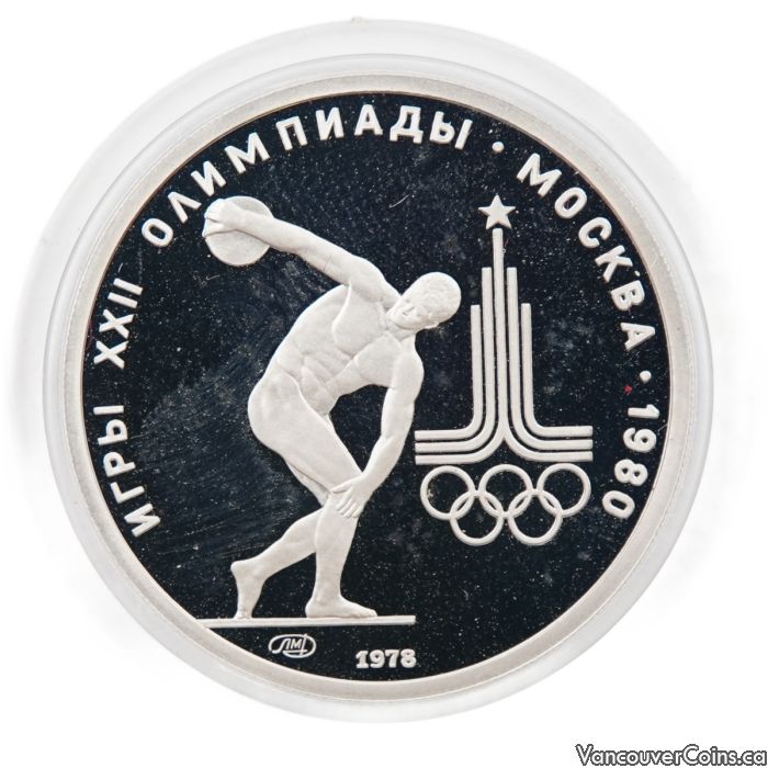 1980 USSR 150 Rubles Platinum Coin – Moscow Olympics “Discus Thrower” – 1/2 oz Proof