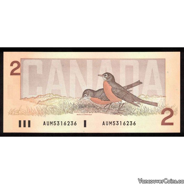 1986 Canada $2.00 banknote Thiessen Crow AUM 5316236 Choice Uncirculated+