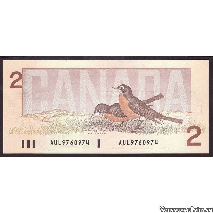 1986 Canada $2 banknote Thiessen Crow AUL9760974 Choice UNC+