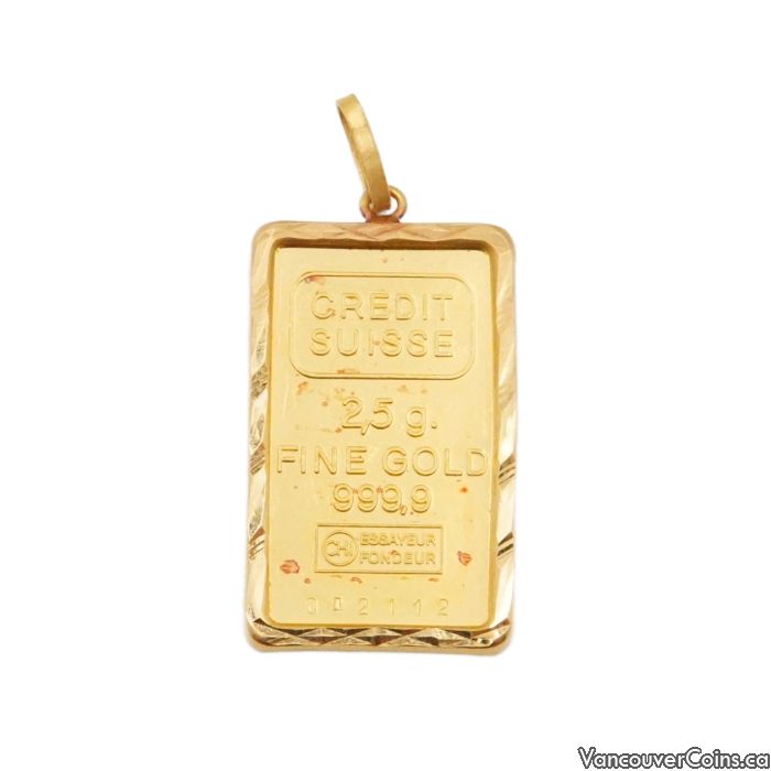 2.5 Gram Credit Suisse .999 Fine Gold Bar with 22K Gold Bezel 3.23g