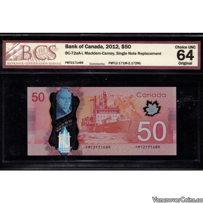 2012 Canada $50 replacement Macklem Carney FMT2171489 BCS CH UNC-64