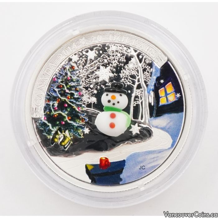 2014 Canada $20 Snowman Silver Coin Venetian Glass RCM OGP