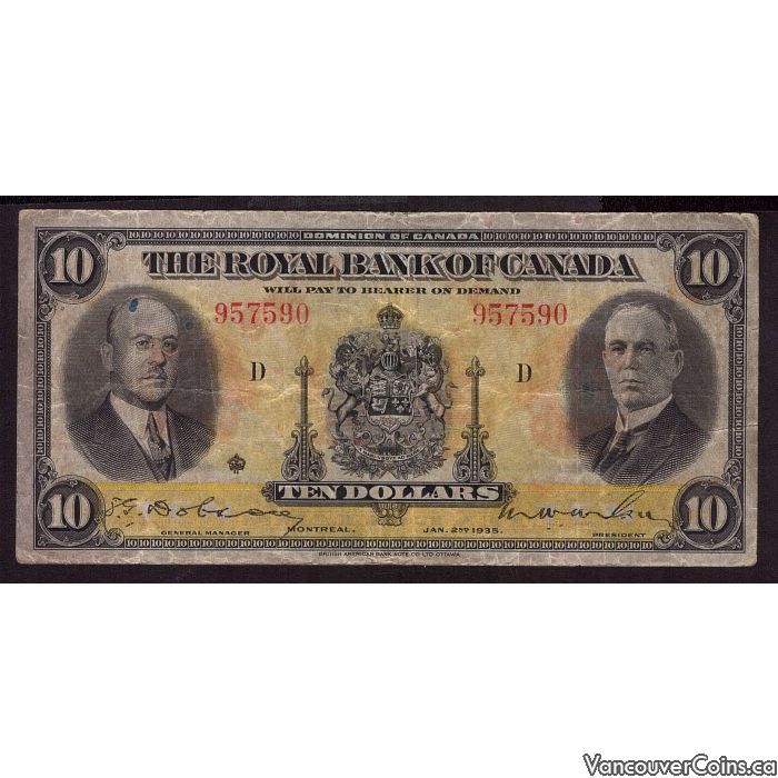 1935 Royal Bank of Canada $10 957590 waxy surface and missing most of reverse