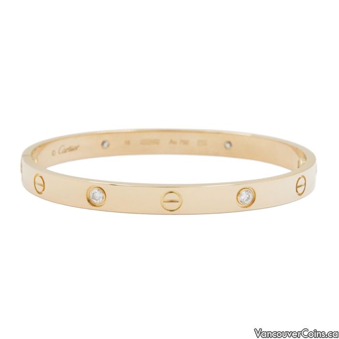 Cartier Love Bracelet Classic 4 Diamonds Yellow Gold Size 18 Bangle