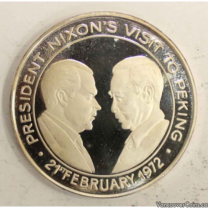 This proof silver medal is to commemorate the visit of U.S. President Richard Nixon to the Peoples Republic of China,the visit was an important step in formally normalizing relations between the United States and the Peoples Republic of China.