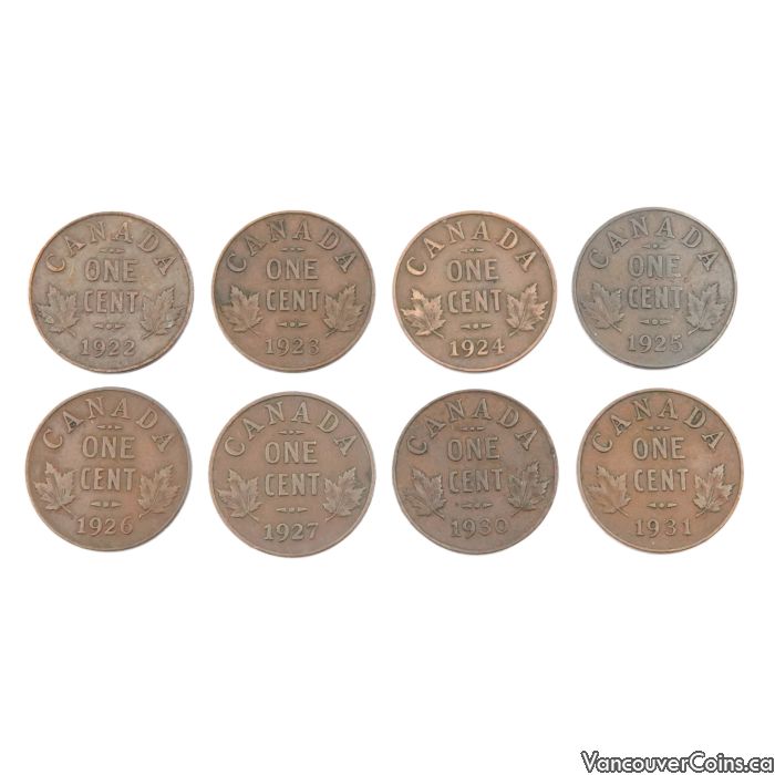 1922 1923 1924 1925 1926 1927 1930 1931 Canada 8x key date cents VG
