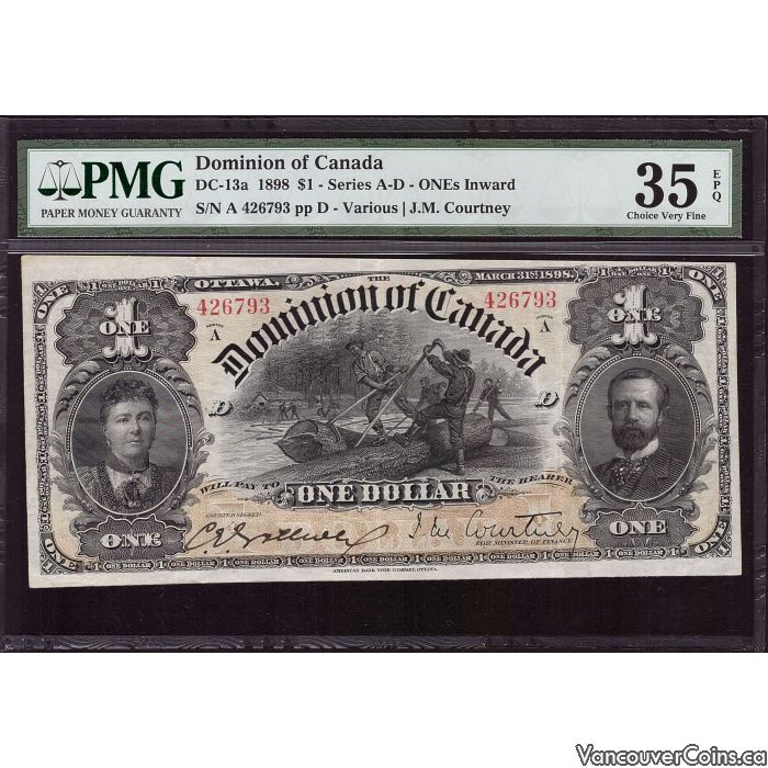 1898 Dominion of Canada $1 dollar banknote 426793 DC-13a PMG VF35 EPQ