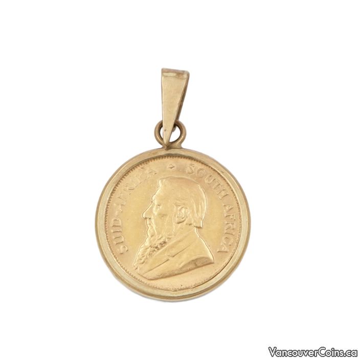 1990 South Africa 1/10 oz Gold Krugerrand – Set in Solid 9K Yellow Gold Bezel – 4.046g Total