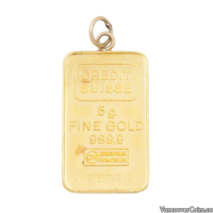 - Genuine Credit Suisse 5g gold bar (.9999 fine gold)