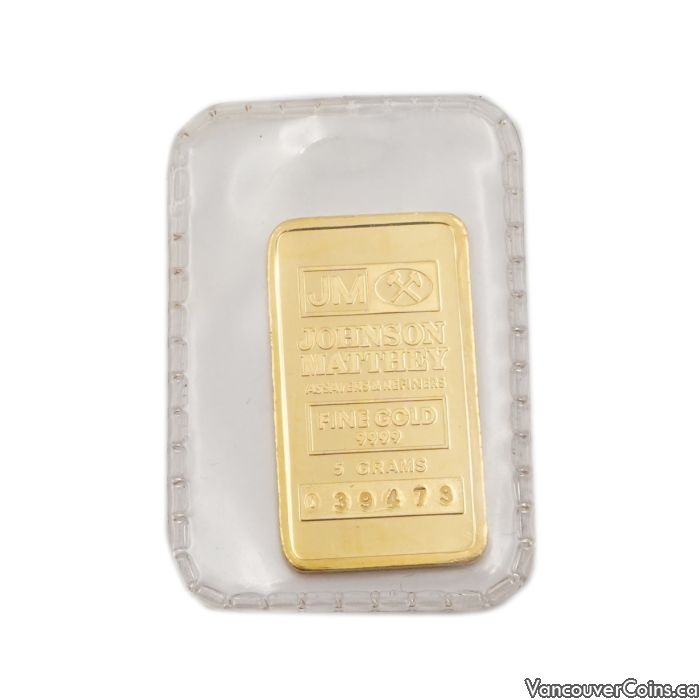 Johnson Matthey 5 Gram Gold Bar Sealed 9999 Pure JM Cross Hammer Logo