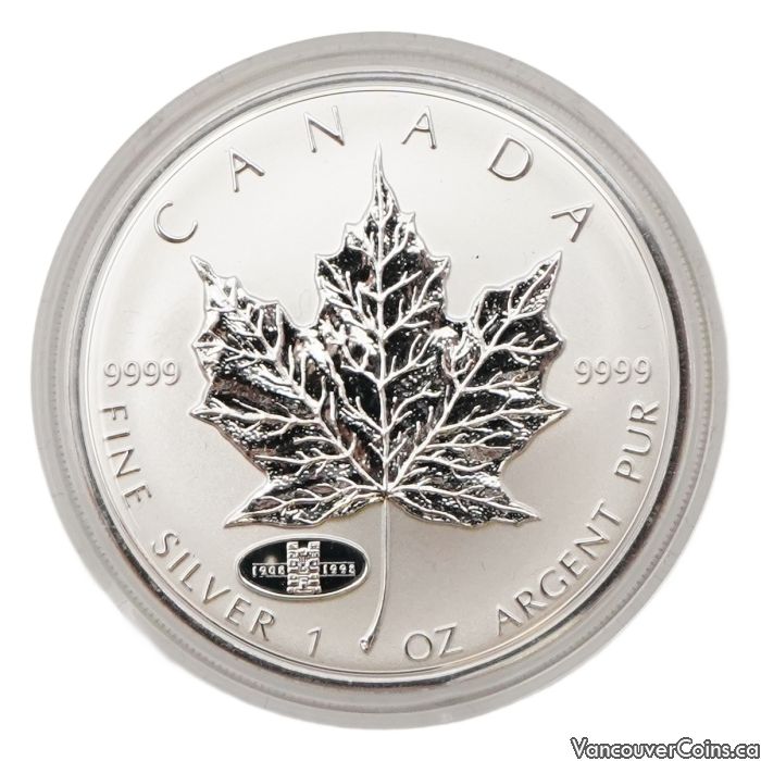 1998 Canada Silver Maple Leaf 1 oz .9999 RCM 90th Anniversary 1908-1998 Privy Mark β Limited Issue in Case