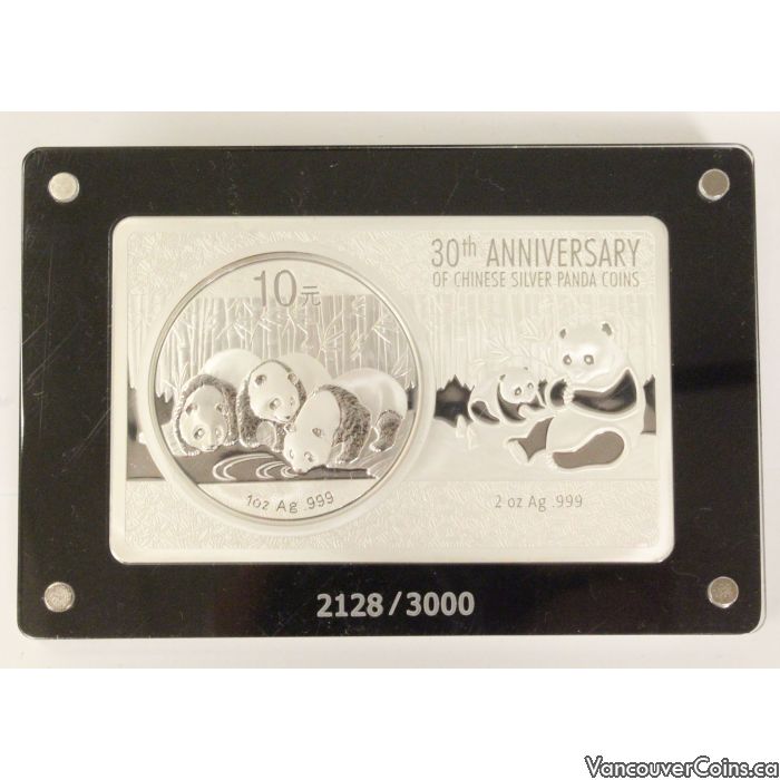 - Weight (oz)* 3oz Total - One 1oz .999 Pure Silver Panda 10 Yuan 2013 & One 2oz 30th Anniversary Bar that the coin fits into.