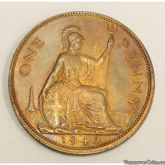 Great Britain 1940 Penny Choice red & brown Uncirculated original MS62RB Authentic, Choice original patina, graded accurately