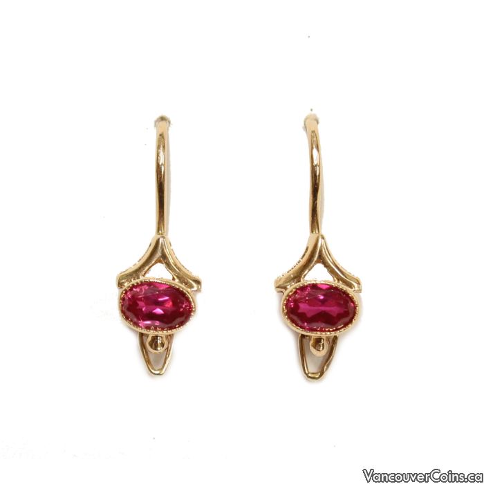 Elegant 14K Rose Gold Ruby Earrings with Wire clasp Fine Jewelry Weighs 2.19 grams