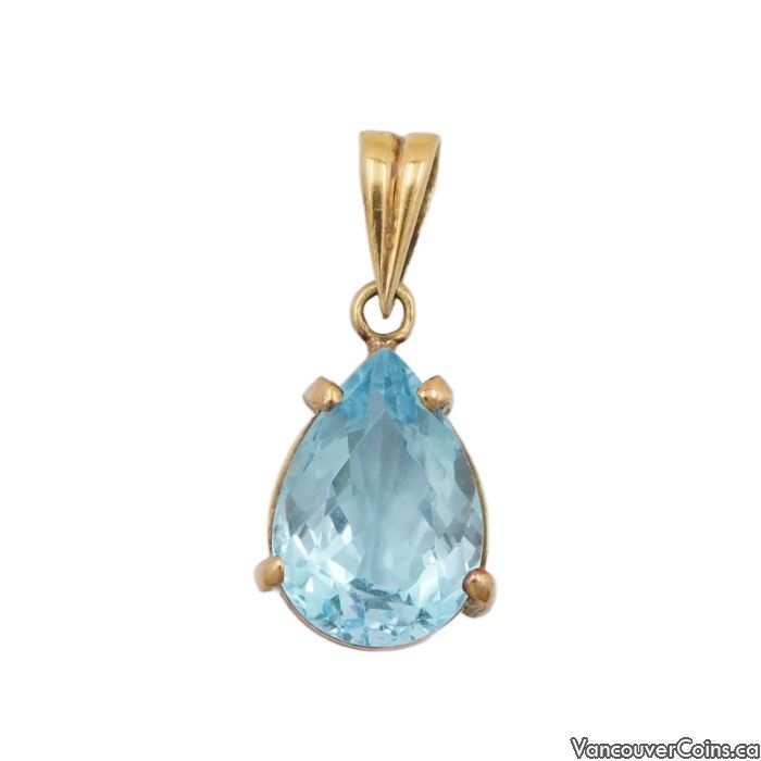 18K Yellow Gold Pendant, Pear-Shaped Blue Topaz 5.43ct