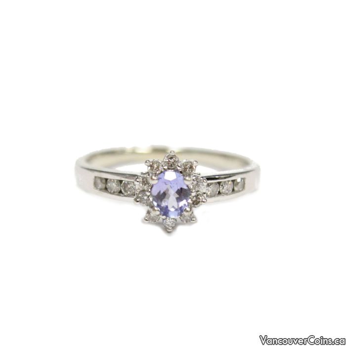 14K White Gold Tanzanite Diamond Engagement Ring Size 9 Natural Tanzanite & Diamonds