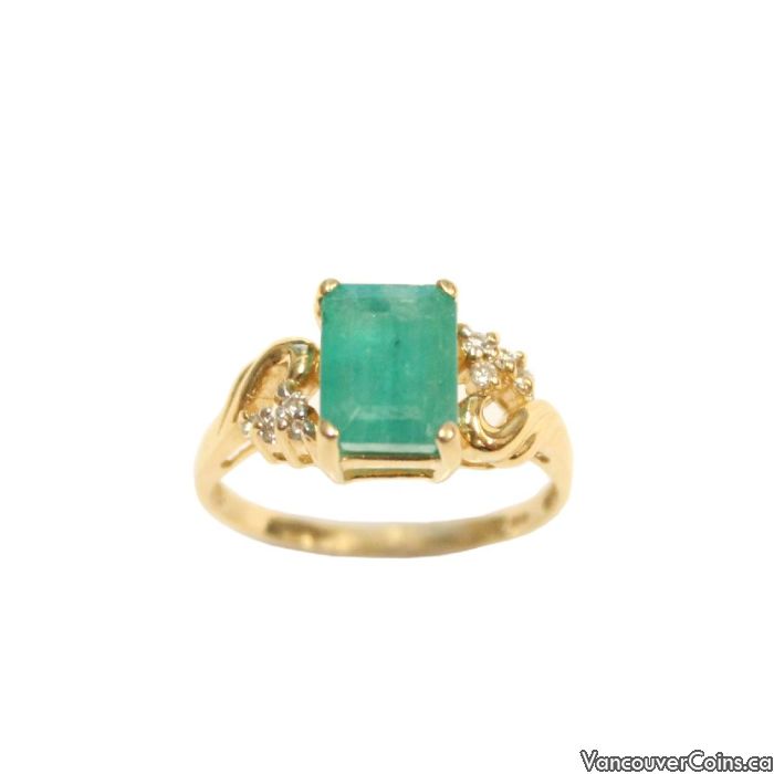 Ladies 14k Yellow Gold Emerald Diamond Ring