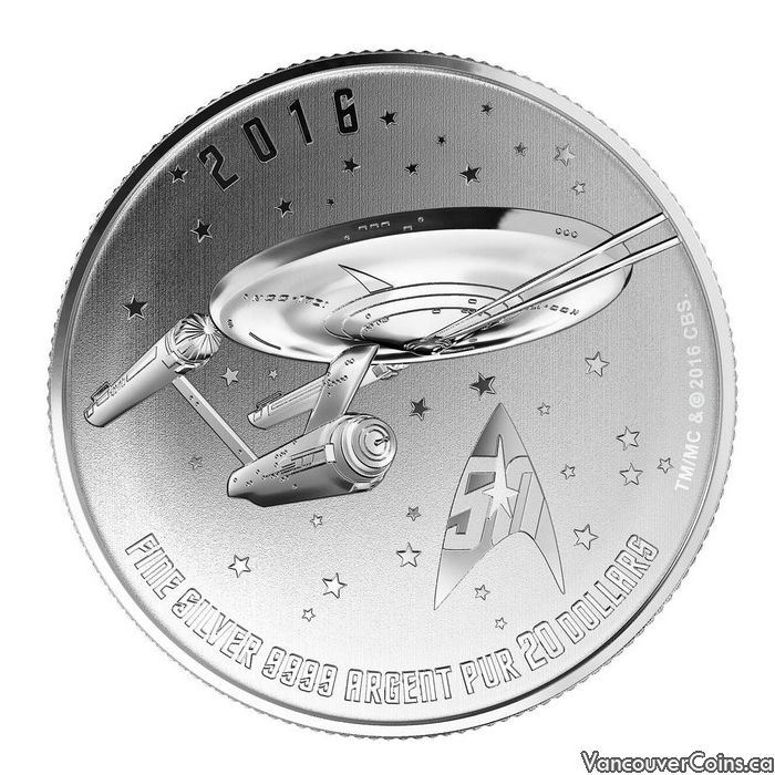 2016 Canada $20 - Star Trek Enterprise 9999 Pure Silver Coin