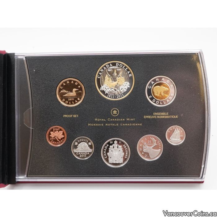 This 2011 Royal Canadian Mint Proof Set includes eight proof-quality circulation coins struck in sterling silver, featuring superior craftsmanship and finish.