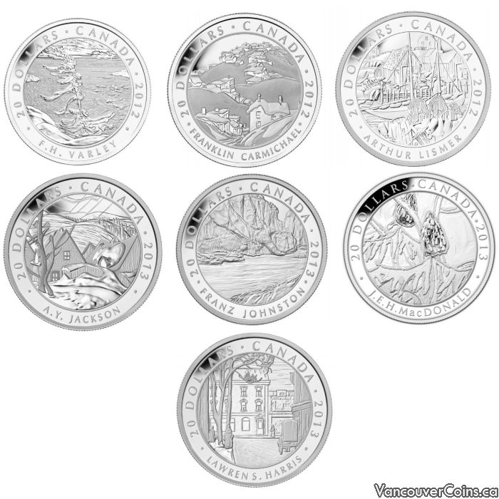 2012 - 2013 Canadian $20 Group of Seven Full Set 1 oz Fine Silver Coins