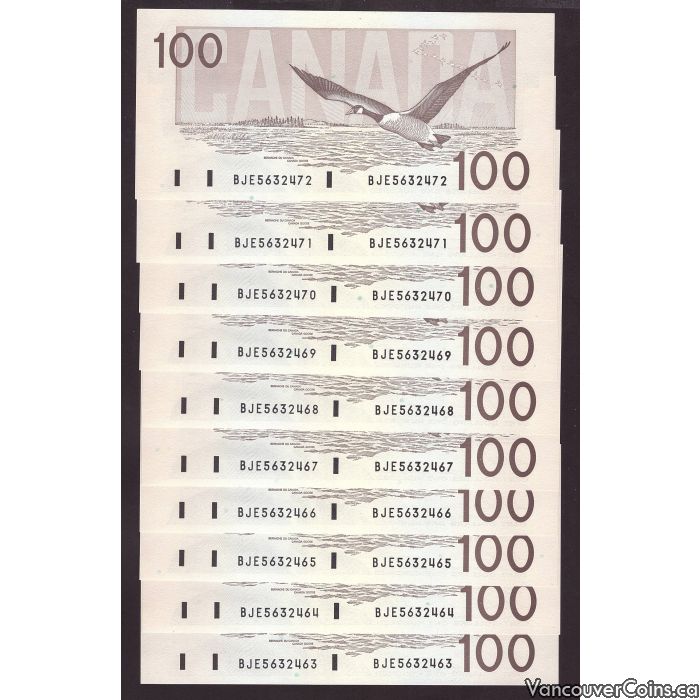 10X Canada consecutive $100 banknotes BC60a-i BJE5632463-72 GEM UNC EPQ