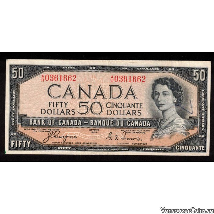 1954 Canada $50 devils face banknote Coyne Towers A/H0361662 VF