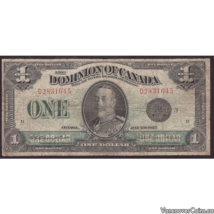 1923 Canada $1 banknote Campbell Sellar DC-25n D2831645 VG+