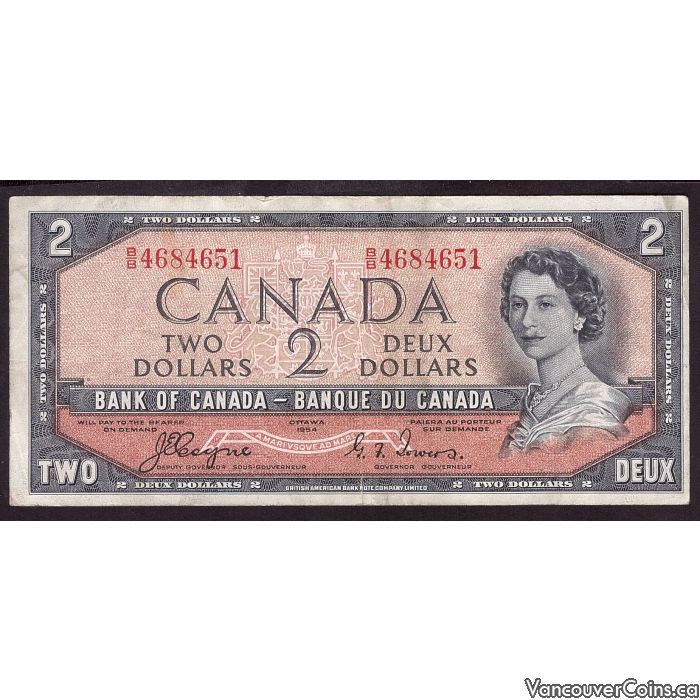 1954 Canada $2 devils face note Coyne Towers B/B4684651 VG/F