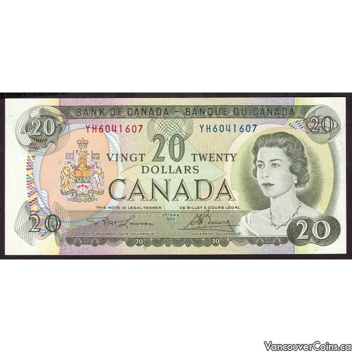 1969 Canada $20 banknote Lawson Bouey YH6041607 nice UNC