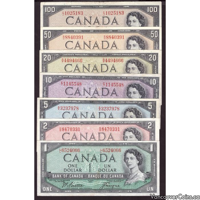 1954 Canada bank note set $1 $2 $5 $10 $20 $50 $100 7-notes F-VF+