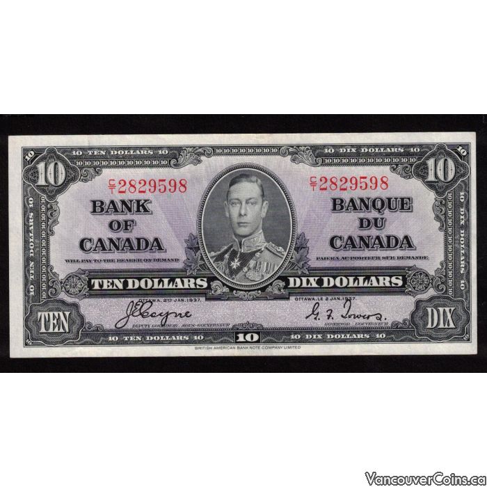 1937 Canada $10 banknote Coyne Towers C/T 2829598 nice AU